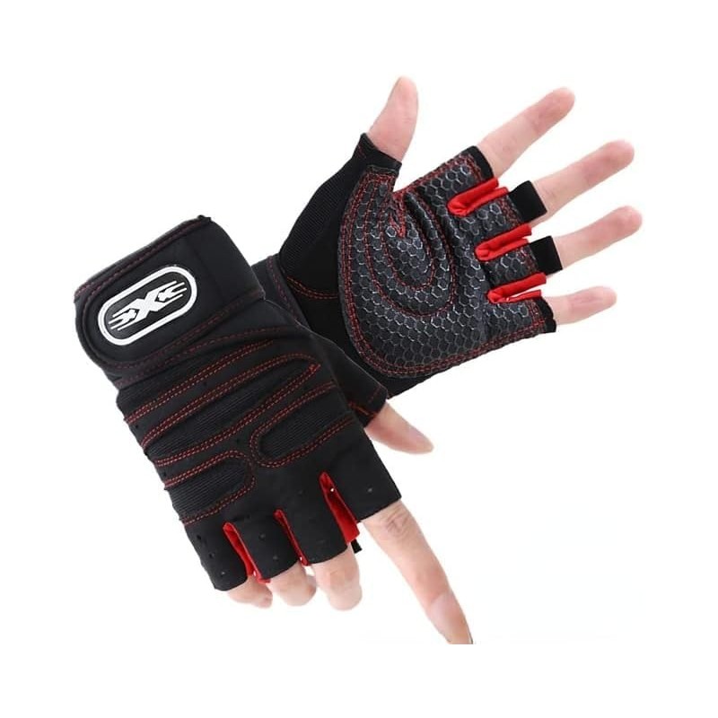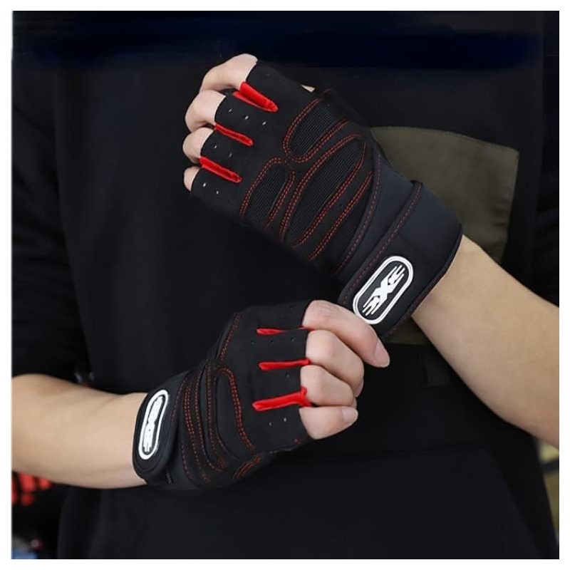 Workout Gloves, Half-Finger Design with Wrist Support, Breathable Mesh, Non-Slip Grip for Fitness Training, Black and Red, L