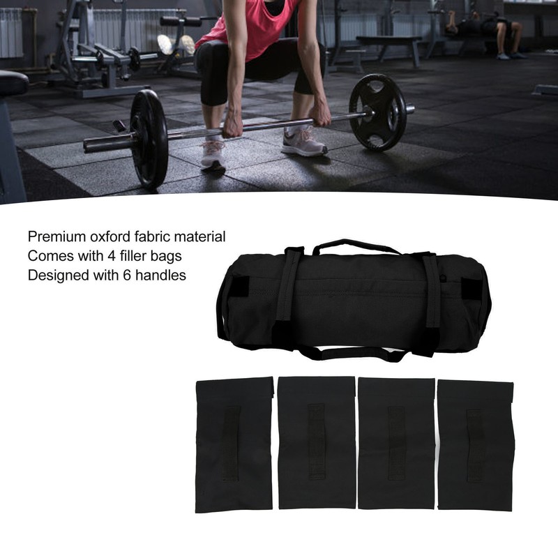 Workout Sandbag Oxford Fabric 6 Handles Easy Adjustment Multi Purpose Fitness Weight Bag with Filler Bags for Indoor Gym Black
