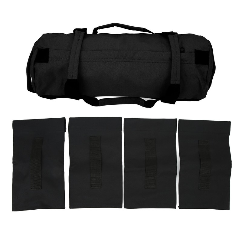 1、Oxford Fabric: This workout sandbag is made of premium oxford fabric material, which is resistant to wear and impact. 2、4 Filler Bags: This fitness weight bag comes with 4 filler bags that allow you to personalize your workout by adding or removing the filler bags. 3、6 Handles: This training weight bag is designed with 6 handles, providing more choices for your training. 4、Wide Application: This fitness sandbag is suitable for weight lifting, front squats, bend over rows, run with it on your back and etc. 5、Easy Storage: This training sandbag can be folded for storage and used for a long time, easy to clean and maintain.
