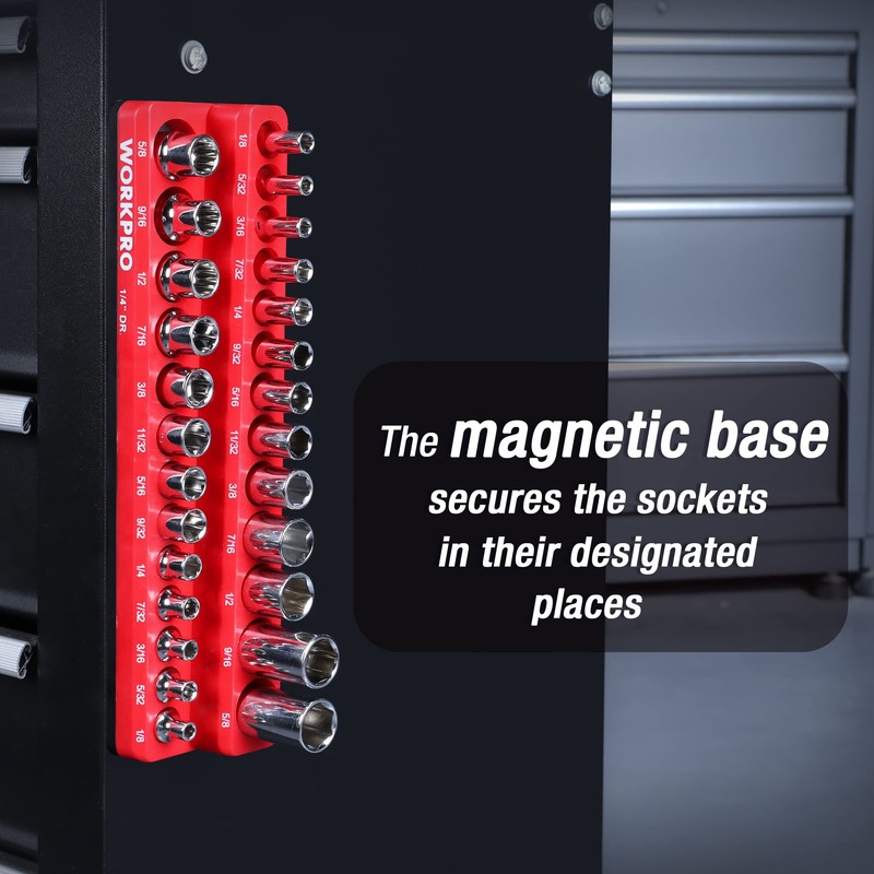 WORKPRO 1/4-Inch SAE Magnetic Socket Organizer, Holds 26 Pieces Standard Size and Deep Size Sockets(Socket not Included)