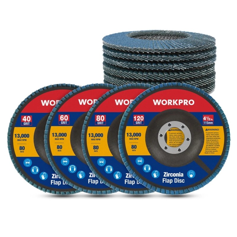 WORKPRO 10PC Flap Disc 40/60/80/120Gr