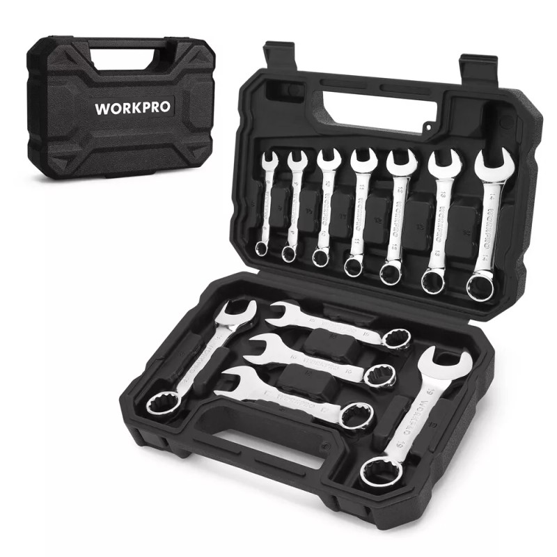 Workpro 12PC Metric Stubby Ratchet Combination Wrench Set 8-19mm 72-Tooth w/Storage Case