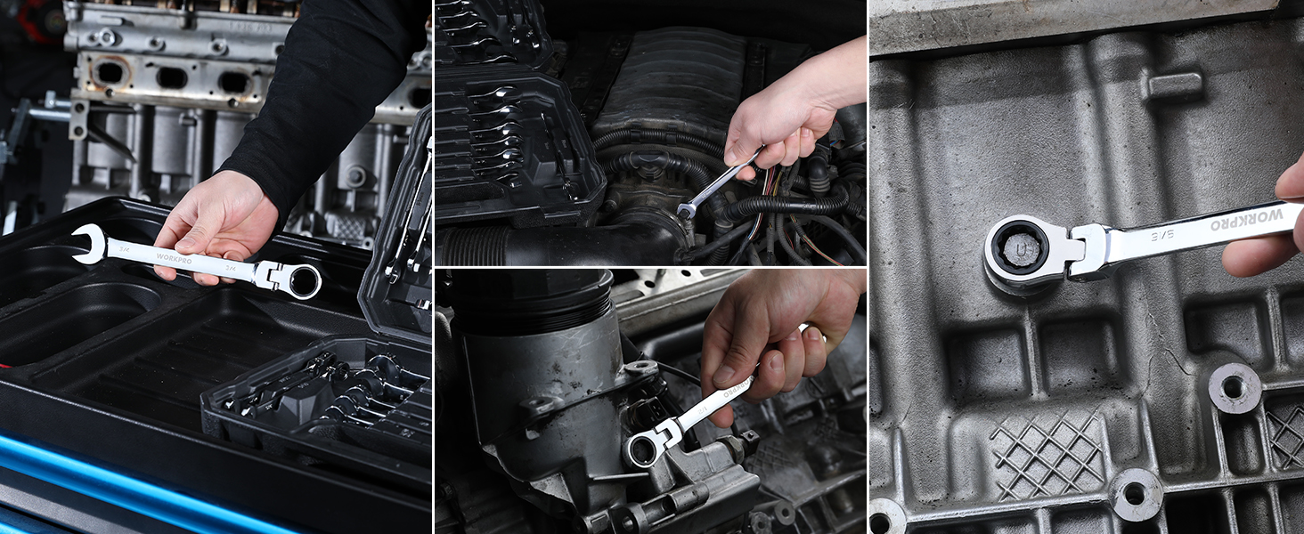 • WORKPRO combination wrench sets have a wide range of application scenarios, including motorcycle repair, auto repair, home projects, bicycle repair, machinery repairs, garage engineering, and so on