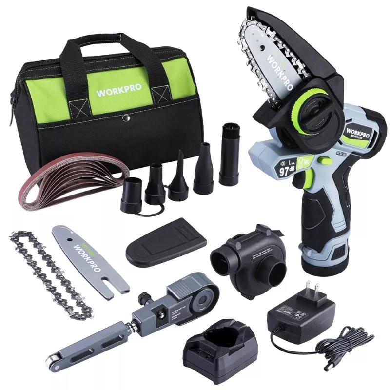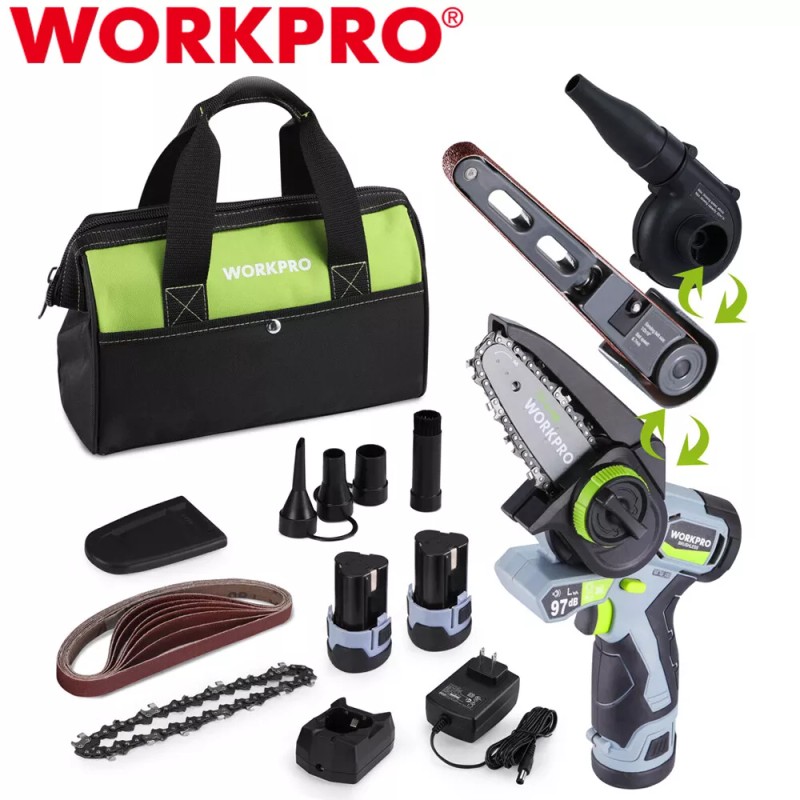 WORKPRO 3-in-1 Cordless Detail Belt Sander Mini Chain Saws Electric Blower Combo