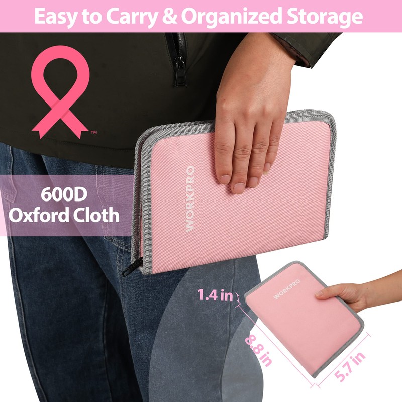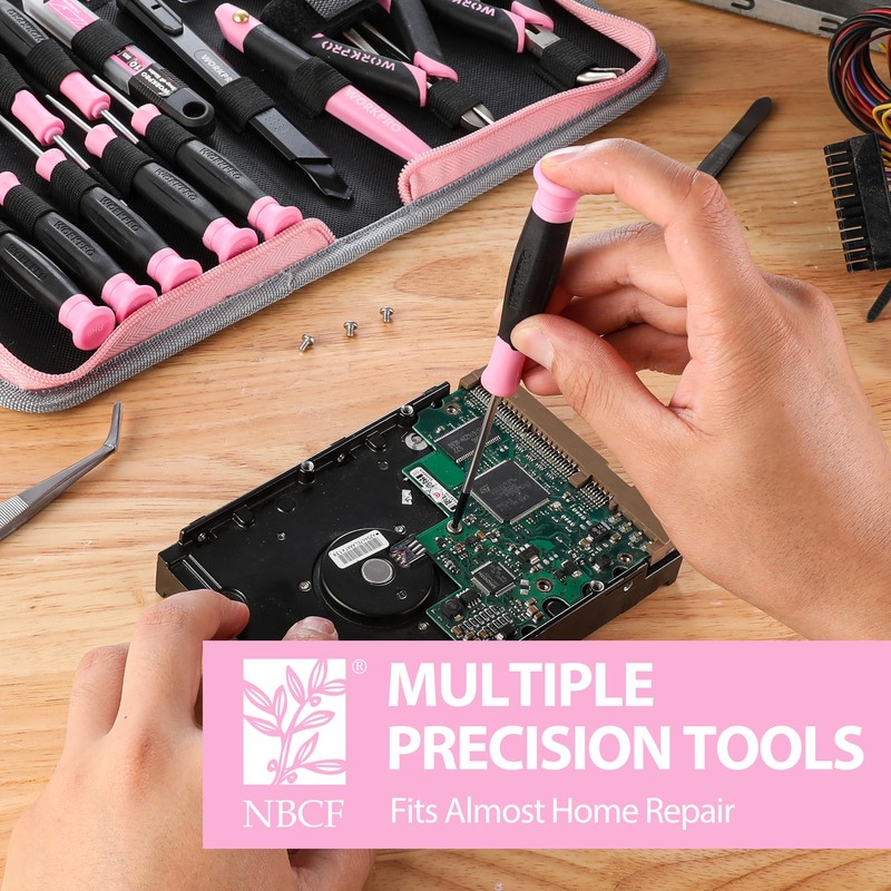 WORKPRO 33PCS Precision Repair Tool Set Includes Pliers Set, Screwdrivers Set, Craft & Utility Knife, Tweezers, Electronic Repair Tool Kit with Pouch for Laptops, Phones, Computer - Pink Ribbon
