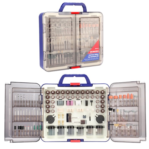 WORKPRO 476PCS Rotary Tool Accessories Kit, Rotary Tool Bits for Easy Cutting, Sanding, Grinding, Carving, Polishing, Drilling and Engraving