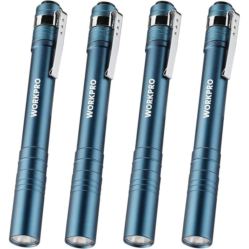 WORKPRO 4PC LED Pen Light Set Aluminum Handheld Flashlight Pocket Penlight Torch