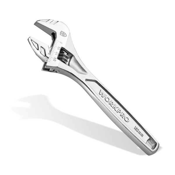 WORKPRO Adjustable Wrench, 6-inch Heavy Duty Spanner with Inch/Metric Scale, Premium Cr-V Steel, Chrome Plated