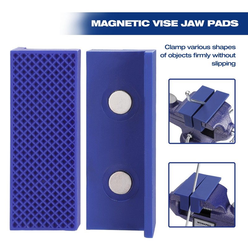• 【PREMIUM DESIGN】Built with a flat anvil provides a flat work surface used for pounding, punching, peening, and other applications that require shaping materials. The package includes magnetic vise jaw pads to clamp various shapes of objects firmly without slipping.