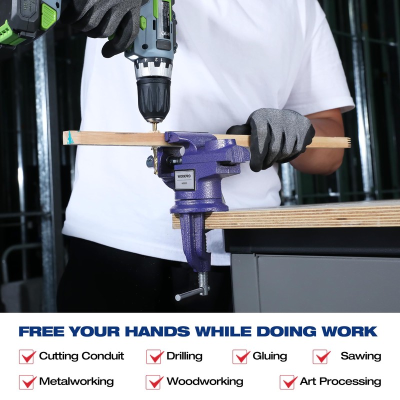 WORKPRO Bench Vise, 2.5 Inch Jaw Width Universal Table Vise, 360°Swivel Base ...