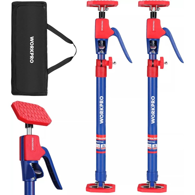 Home Improvement Essentials: WORKPRO 3rd hand support pole, which has 154lbs/70kg bearing capacity and expands from 23.6 to 45.3 in (60 to 115 cm), is your best home improvement partner. This adjustable support pole is excellent for multiple leveled installments around your house, such as cabinet installation, drywall lift, crown moldings, door parallel, etc.