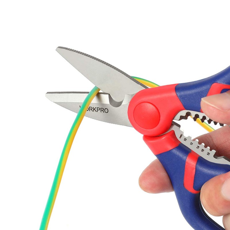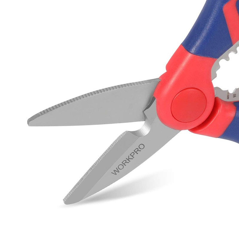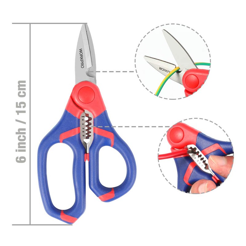 WORKPRO Electricians Scissors & Wire Cutter Stripper 2-in-1, Multi-Function Shears, 152mm/6-inch, Bi-Material Soft Handle