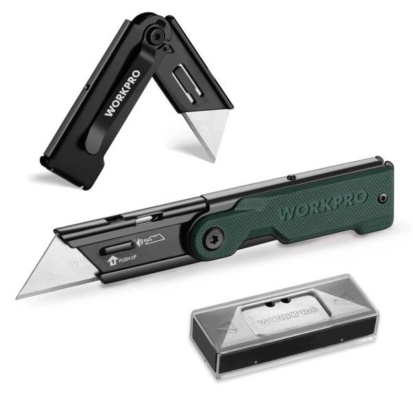 WORKPRO Folding Utility Knife 10 Extra Blade Razor Knife Quick Change Box Cutter
