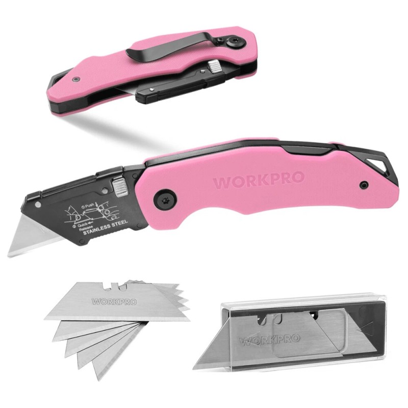 WORKPRO Folding Utility Knife Box Cutter with 10 PCS Blades Quick Change Blade