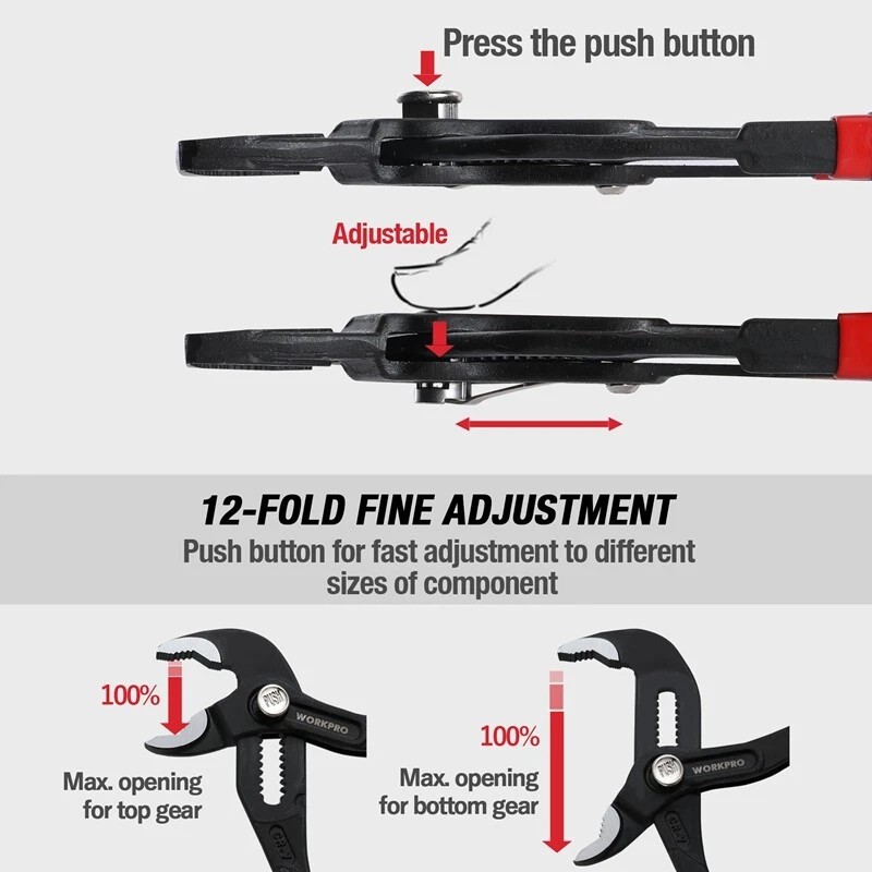 WORKPRO Groove Joint Plier Set 12/7/9.5 Inch Fast Adjustable Water Pump Plier - 10-inch