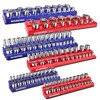 - Large Capacity Magnetic Socket Organizer Set: These magnetic socket organizers can store up to 141 metric and SAE sockets and two drive adapters. The kit includes three blue metric magnetic socket organizers and three red SAE magnetic socket organizers for 1/4", 3/8", and 1/2" drives. Used to collect SAE and metric receptacles, but not for impact sockets. Tip: sockets are not included with the holders.