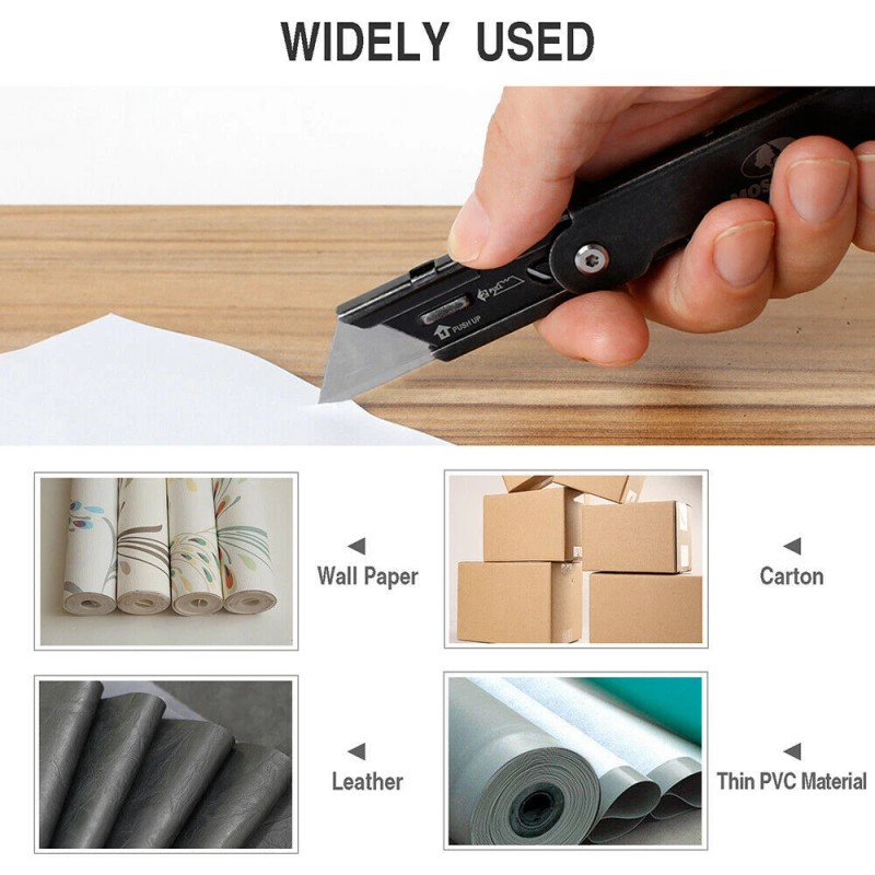 Compact Utility Knife with Belt Clip - EDC folding utility knife can be placed easily in the pocket, stone washed body offers a nice look. (This box cutter is designed with distressed surface, not a used utility knife.) Pocket clip leads to easy and safe carry, the clip may be a little bit loose but will not fall, be relax and take care during use
