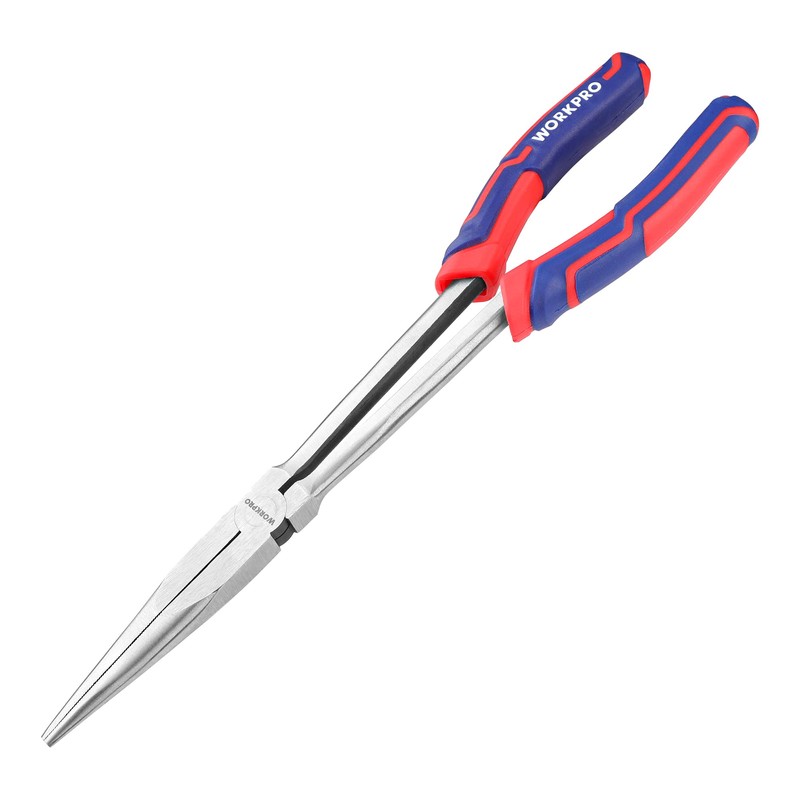 WORKPRO Premium 11” Extra Long Needle Nose Pliers, Paper Clamp Precision, Heavy-Duty CRV Steel, Soft Grip