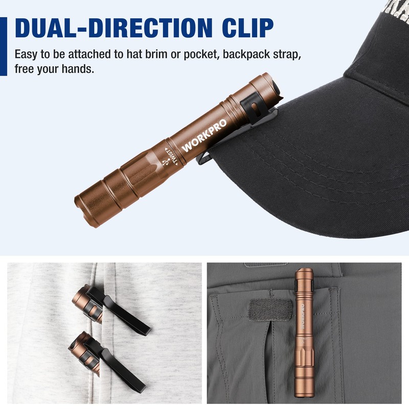 - Small Yet Mighty: The WORKPRO Mini flashlight features the highly recommended T8 Osram LED, which delivers an incredible 300 lumens and a beam distance of up to 196 feet. With its ultra-compact design, measuring just 4-1/4 inch in length and weighing only 50 g/1.7 oz, the small flashlight takes up barely any space in the pocket