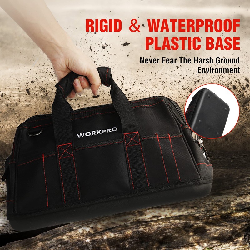 WORKPRO 16-inch Close Top Wide Mouth Tool Storage Bag with Water Proof Rubber Base, W081022A, 16"