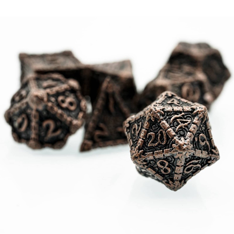World of Dice - Deadly Dagger Series - Pen & Paper Metal Dice Set for Dungeons and Dragons, DSA, 7 Dice, W4 to W20 (without Case, Rustic Copper)
