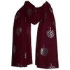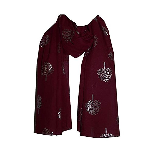 World of Shawls Silver Foil Mulberry Tree Print Fashion Scarf (Maroon)