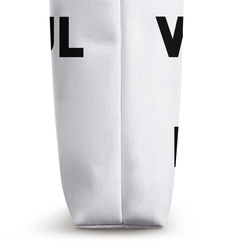 - 16” x 16” bag with two 14” long and 1” wide black cotton webbing strap handles.