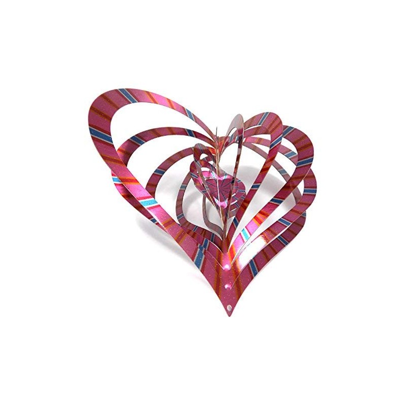 WorldaWhirl Whirligig 3D Wind Spinner Hand Painted Stainless Steel Twister Heart (12 Inch, Multi Color)