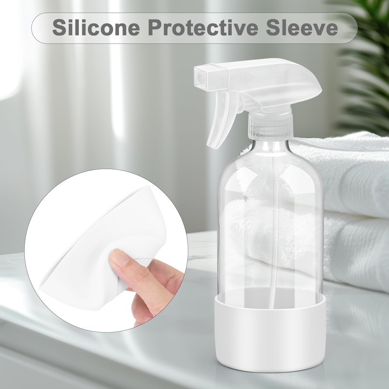 Worldgsb Worldgsb 2 Pack Glass Spray Bottles with Silicone Sleeve, 16 oz Empty Refillable Containers with Adjustable Spray Nozzles, Spray Bottles for Hair, Cleaning Solutions and Plants White