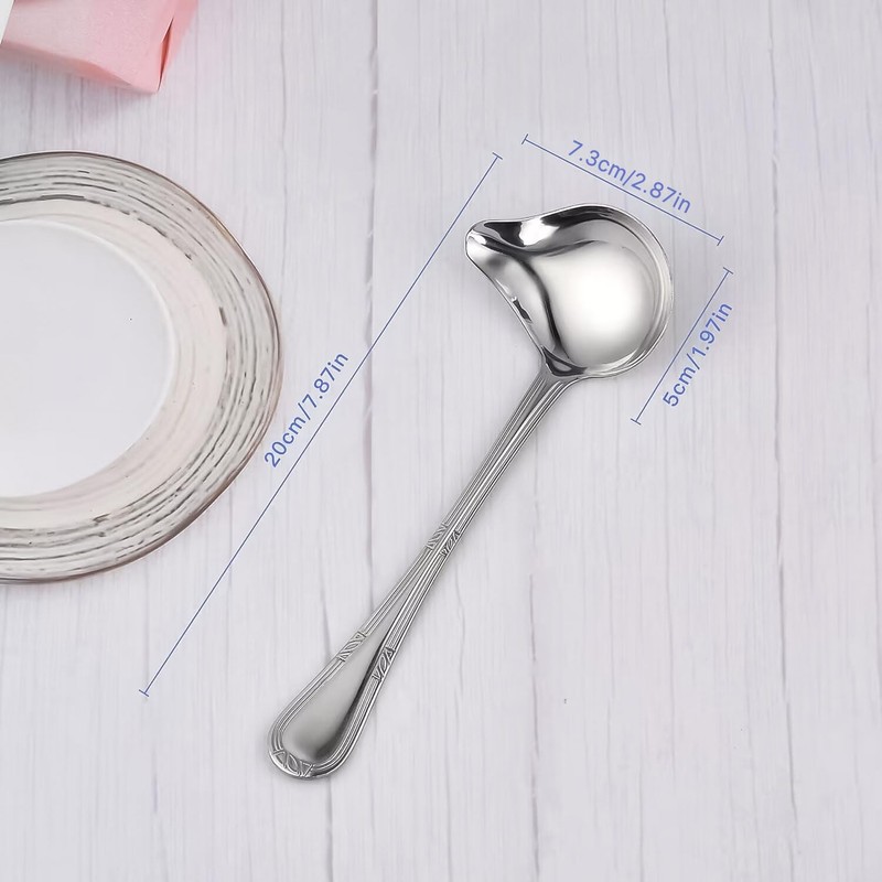 - Package Includes: There are 2 pcs sauce gravy spoons in the package. Size: 20 cm/7.87 in x 7.3 cm/2.87 in(L x W). Any questions or concerns, we will certainly seriously and solve all your problems and confusion