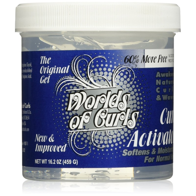 Worlds Of Curls Curl Activator regular gel, gives dramatic definition, shape and control. Prevent stubborn flyaway and frizz. Softens and moisturizes normal hair. Awakens natural curls and waves. Gives dramatic definition, shape and control.