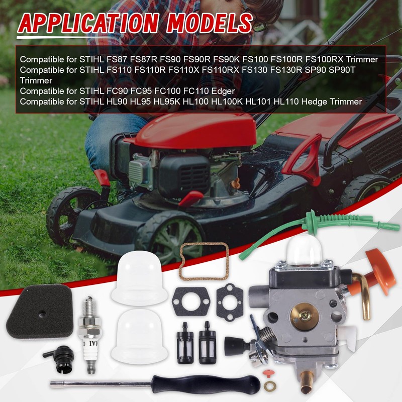 - Applicable Models: Carburetor repair kit is replacement for STIHL FS87 FS87R FS90R FS110R FS90 FS100RX FS110 HL90 HL95 HL100K KM90 KM90R KM100 KM100R KM110 KM130 Trimmer.