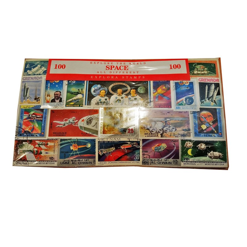 - GREAT FOR AGES 9 TO 99! Souvenirs and collectibles for all ages! Space fans are all over the world and we know that space-themed stamps can be difficult to find! These 100 various Space stamps have all been used for actual letters and packages! Perfect for art projects, trading, or putting into albums! Bring them to the football game or Junior Astronaut’s Convention and trade with all your friends! Each package has a different assortment of stamps: buy several for complete coverage!