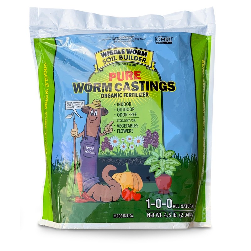 Wiggle Worm 100% Pure Organic Worm Castings Fertilizer, 4.5-Pounds - Improves Soil Fertility and Aeration for Houseplants, Vegetables, Gardens, and More – OMRI-Listed and Mineral-Dense