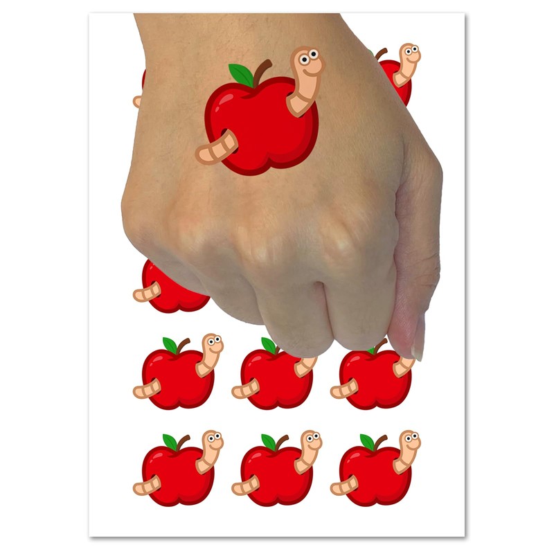 Worm in Apple Temporary Tattoo Water Resistant Fake Body Art Set Collection - 54 1" Tattoos (1 Sheet)