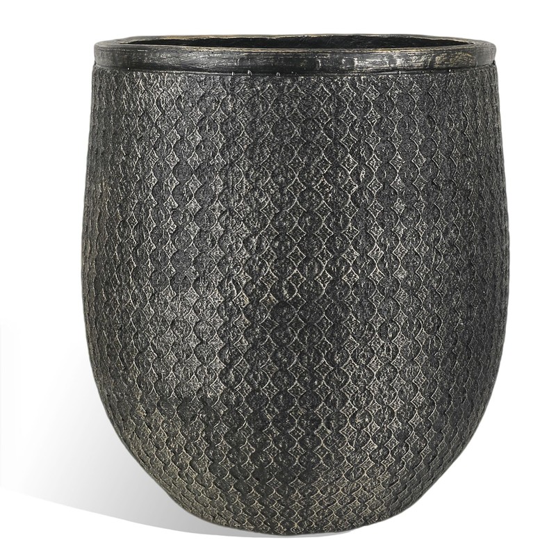 Worth Garden Large Round Planter – 14.5" Dia x 17.5" H Lightweight Magnesium Oxide Cement Plant Pot with Texture – Raised Pattern Concrete Look – Drainage Hole – Indoor & Outdoor Use - Black Gold