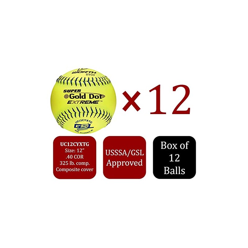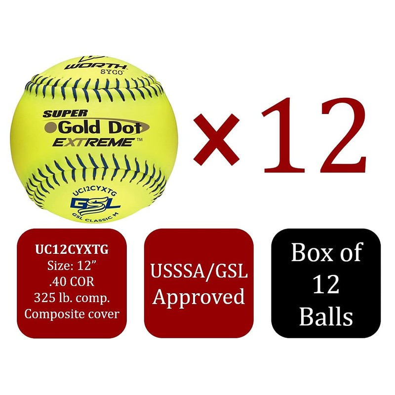 Worth | Slowpitch Softballs | GSL Approved | 12 Count | Multiple Options, Gold Dot Extreme - Composite Leather Cover - Optic Yellow
