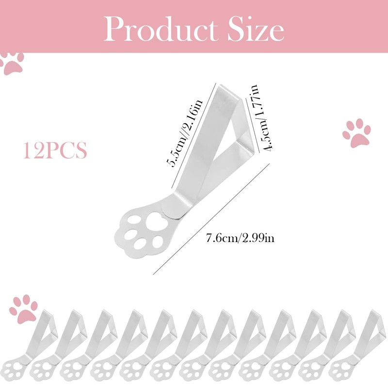 WORUIB 12 Pcs Tablecloth Clips, Stainless Steel Cat Paw Design for Outdoor Tables, Windproof Table Cloth Clips for Camping Picnic Party Wedding, Durable and Rust-Resistant (7.6x4.5x4 cm)