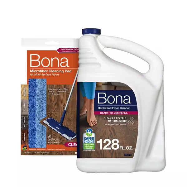 - Includes a 128oz. refill of Bona Hardwood floor cleaner
