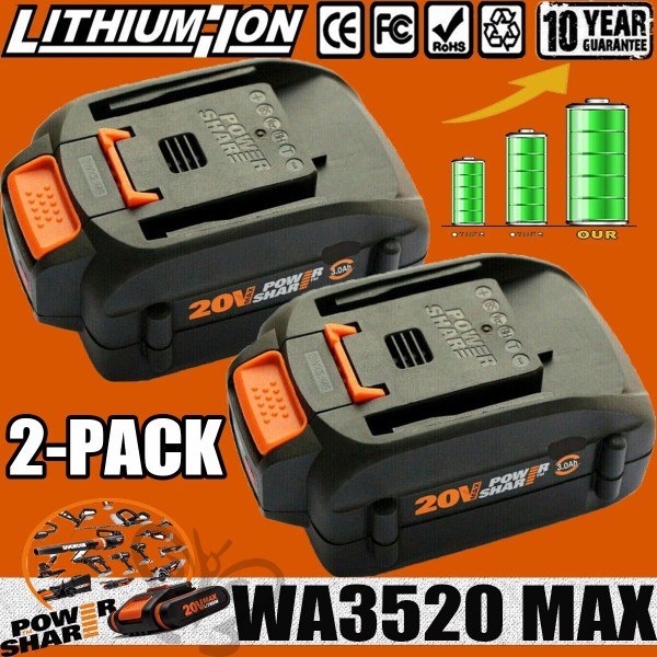 WORX 2pack For WORX 20V MAX Extend Lithium Battery 20 Volt WA3520 WA3525 WA3575 WG155
