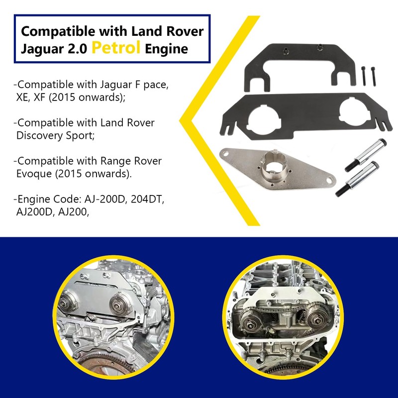 - DUAL-FUEL ENGINE SPECIALIST – specially design to lock the camshaft in a correct timing position. Exclusively compatible with Land Rover 2.0 both diesel (AJ200D/204DT) & petrol (INGENIUM I4 2.0L) engines. Resolves compatibility gaps in conventional timing kits