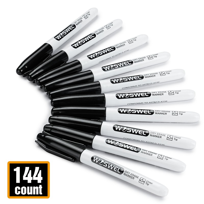WOSWEL Dry Erase Markers Bulk, 144 Pack Black Chisel Tip Whiteboard Markers, Low Odor Dry Erase Markers for School Office Home