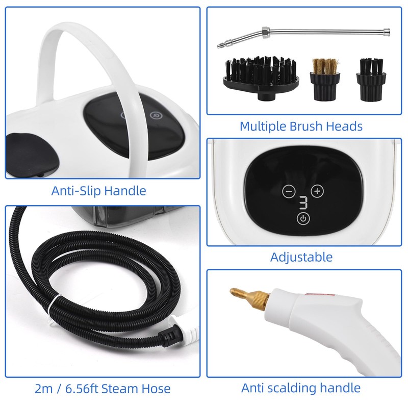 • 【Versatile and Adjustable】- This Handheld Steam Cleaner comes with 6 adjustable steam levels, providing you with the flexibility to tackle different cleaning tasks. Whether it's cleaning kitchen appliances, refreshing upholstery, this portable steam cleaner can handle it all.