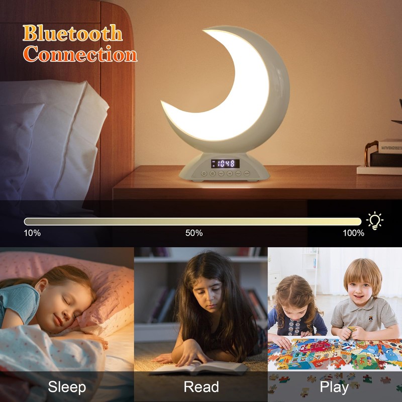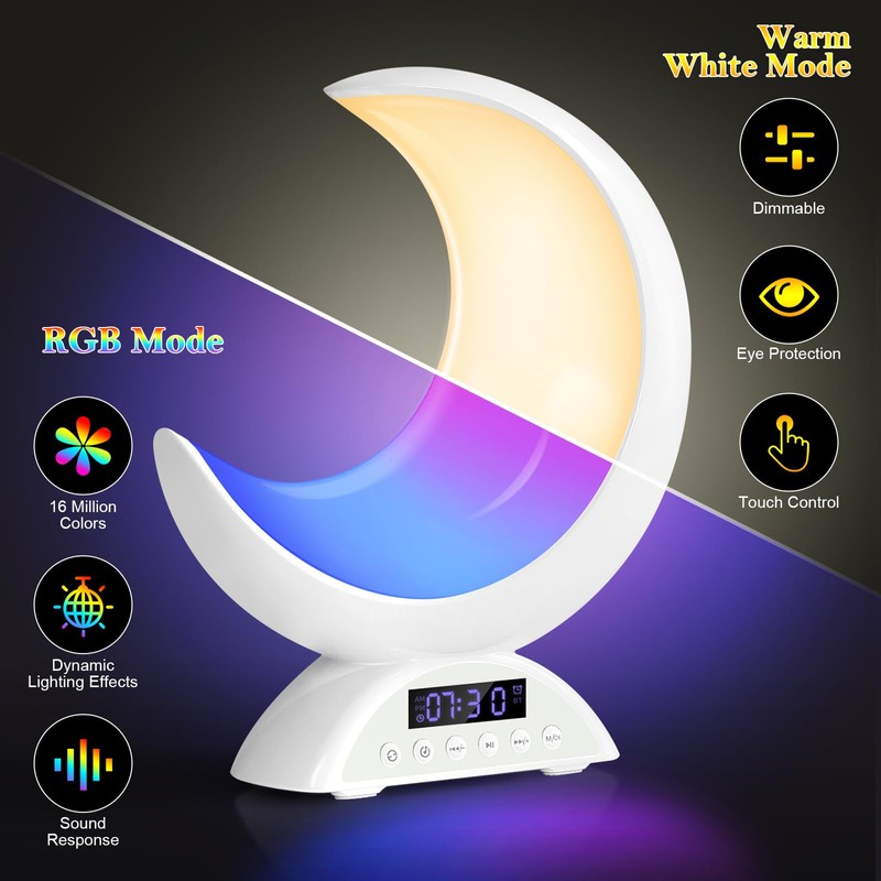 • Perfect light alarm clock for the bedroom - The romantic and elegant crescent moon design not only provides gentle and atmospheric lighting, but also serves as an alarm clock. With 6 different ringtones, it is the ideal companion for a refreshing start to the day.