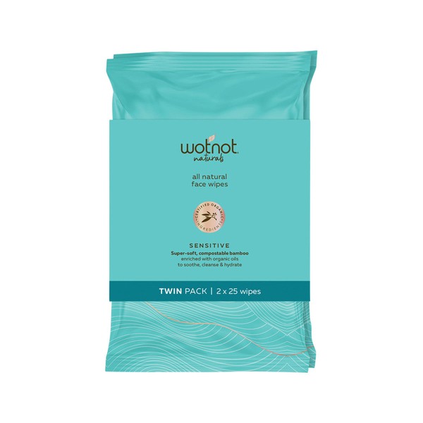 Wotnot Naturals All Natural Face Wipes Sensitive x 25 Pack Twin Pack