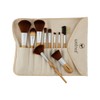 This handmade make-up brush set features handles made from satin lacquered bamboo, which is eco-friendly and light weight for easy handling - yet strong and waterproof.