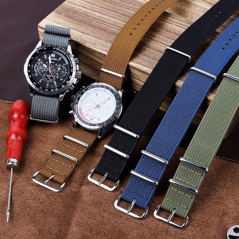 - PREMIUM BALLISTIC NYLON BAND: This strap is made of 1.2mm thickness ballistic ribbed nylon material.Nylon has a subtle ribbed texture, similar to vintage military webbing, that will give your watch the chance for a classic vintage look.
