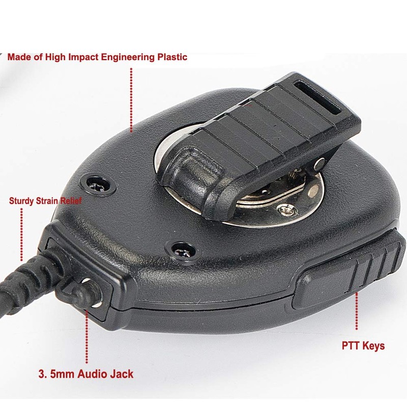 - The two way radio/GMRS radio accessories make with High impact casing and High Grade re-enforced cabling, 8 Position Reinforced Spring Clip The crystal mic with 360°rotatable clip and 19.29 inch cable length allow you can hang on everywhere you wanted
