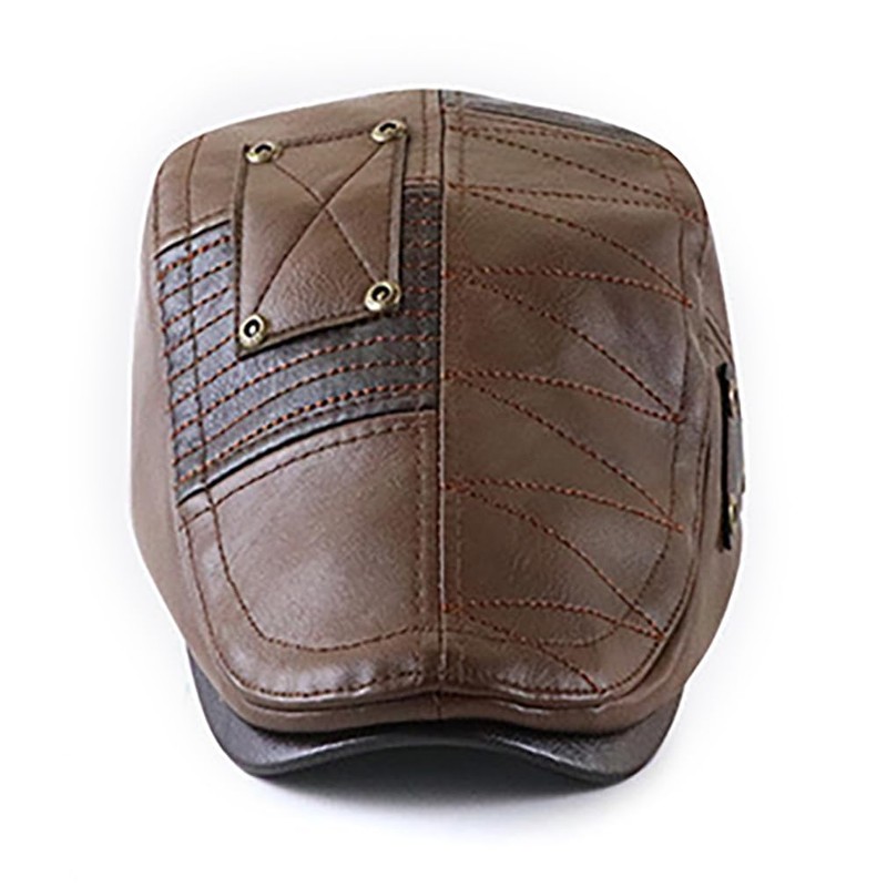 Wovanoo PU Leather Beret Hat Casquette Flat Visor Newsboy Cap Ivy Golf Duckbill Hat for Men Coffee 01