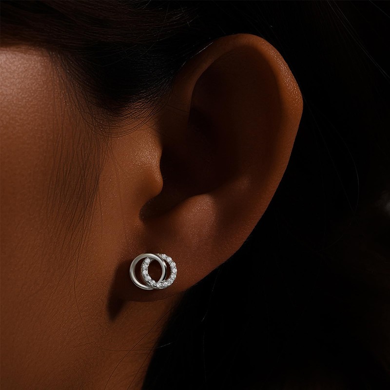- Size: stud earrings double circle ring 10*13mm, set with 15 small 1.25mm white cubic zirconia. Small and lightweight circle stud earrings.